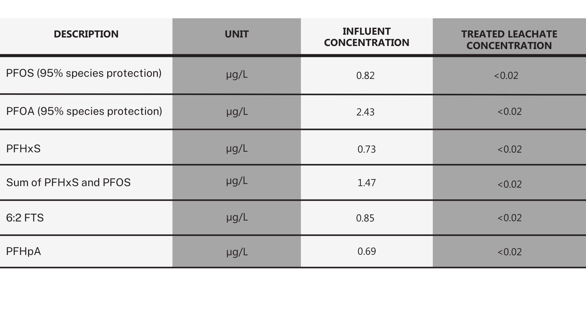 Results indicate that regulatory requirements are being met and exceeded, with up to 100% of PFAS contaminants being removed.